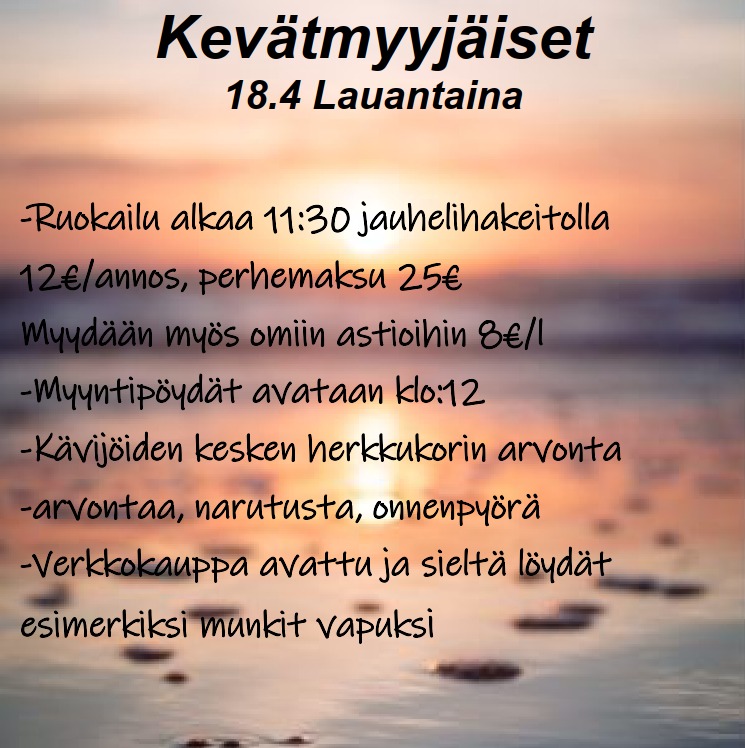 Myyjäistuotteiden nouto la 18.4. Reisjärven rauhanyhdistykseltä klo 11:30-13.